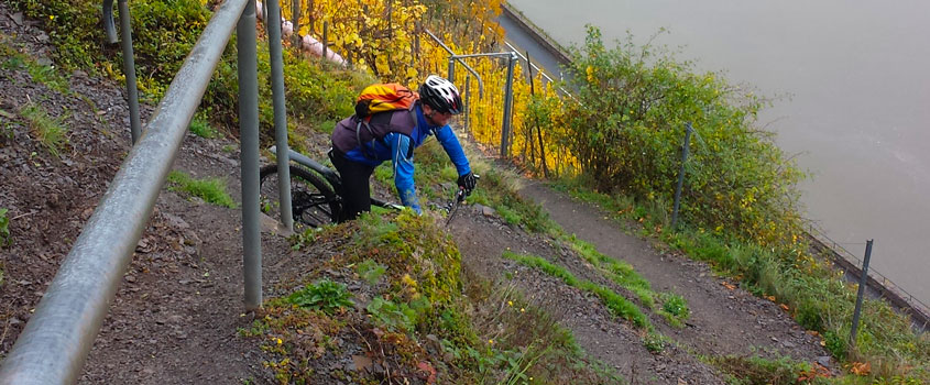 Hier, wo sich der Fluss wie eine Schlange durch die Berge windet könnt Ihr unvergessliche MTB-Touren starten. Ausgangspunkt für fast alle Touren, ist unser kleiner Ort Bengel. Von dort aus gelangen wir zu den schönsten Trails und den feinsten Panorama-Aussichtspunkten. Unser Motto: Trailspaß und Landschaft genießen.
